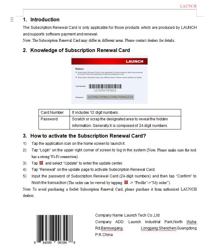 4. We will send Subscription Renewal Card with Card Number and Password to you by email.